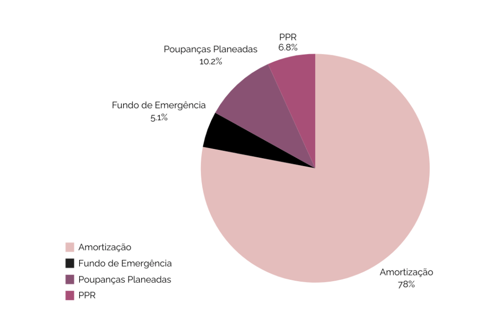 Como já é habitual, a maior fatia da poupança foi para a amortização do crédito, e ainda reforcei o Fundo de Emergência, o PPR com o valor do bónus pago no Coverflex e as poupanças-objetivo do seguro do carro e treinos.
