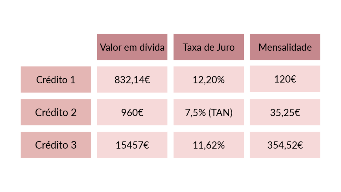 - Método Avalanche: Começar pelo crédito com maior taxa de juro e, portanto, mais caro. Neste caso, teria de começar pelo crédito 3.