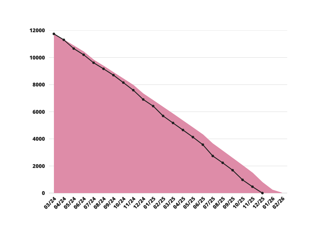 Sempre que conseguia poupar o valor mínimo, fazia a amortização. No final de Outubro de 2023, 4 meses antes do previsto, o crédito 2 estava totalmente pago!