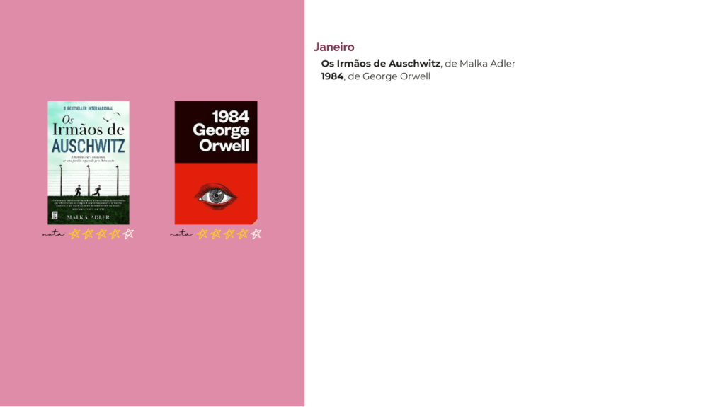 Foram só dois, mas gostei imenso de ambos. A verdade, é que as primeiras páginas de “Os Irmãos de Auschwitz” não prenderam logo a minha atenção e passei uns dias a arrastar, mas depois… Adorei!