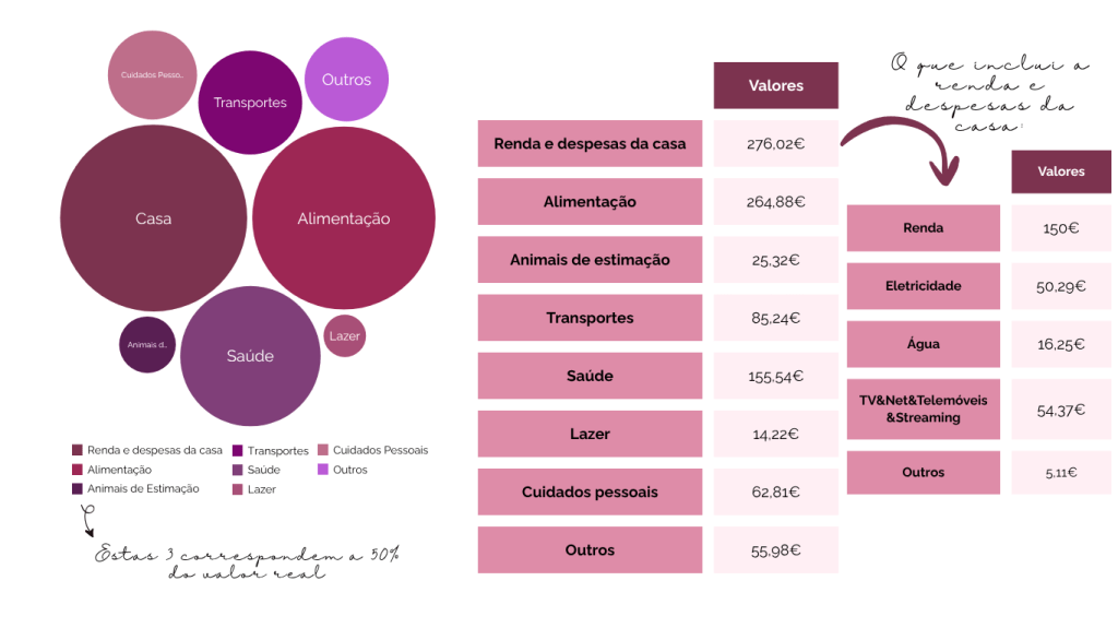 De forma geral, as despesas também não sofreram grandes alterações ao que é normal, com a exceção dos Cuidados Pessoais, onde inclui o valor gasto em alguma roupa de verão e de ginásio e, nos Outros o presente de aniversário do meu pai e uma subscrição.