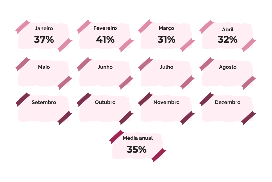 A Taxa de Poupança foi de 32% (continua abaixo do valor que estipulei para este ano de 35%), o que colocou a média anual nos 35%.